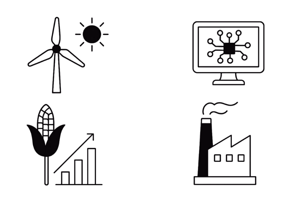 LNG, gas pipelines, renewables (solar, hydro, wind)